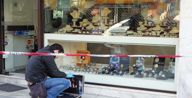 Οι δράστες βρήκαν αυτό που έψαχναν σε τρία κοσμηματοπωλεία στο κέντρο της συμπρωτεύουσας. Τον Νοέμβριο του 2010 εισέβαλαν σε κατάστημα στην οδό Τσιμισκή, με καλυμμένα τα χαρακτηριστικά των προσώπων τους. Πυροβόλησαν και έσπασαν με σφυριά τις προθήκες και αφαίρεσαν πλήθος ρολόγια. Τον Μάρτιο του 2013, σύμφωνα με την Αστυνομία, η ίδια επικίνδυνη σπείρα απείλησε με όπλο τον ιδιοκτήτη κοσμηματοπωλείου στην οδό Εγνατία και αφαίρεσε κοσμήματα συνολικής αξίας 70.000 ευρώ. Περίπου δύο εβδομάδες αργότερα διέπραξαν δεύτερη ληστεία στην Εγνατία, αλλά ο ένας Σέρβος ακινητοποιήθηκε από τον ιδιοκτήτη με τη βοήθεια περαστικών και λίγο αργότερα πιάστηκε και δεύτερος.