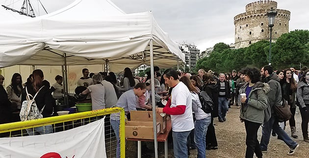 Χιλιάδες Θεσσαλονικείς γεύτηκαν τα «άσχημα» λαχανικά σε ένα σούπερ τραπέζι κάτω από τον Λευκό Πύργο