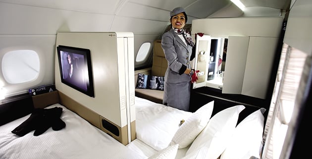 Η αεροπορική εταιρία των Ηνωμένων Αραβικών Εμιράτων είναι η πρώτη που παρέχει σουίτες στους επιβάτες της! Οχι απλώς πολυτελείς καμπίνες με καθίσματα άνετα που γίνονται και κρεβάτι, αλλά πραγματικά «ιπτάμενα» διαμερισματάκια τριών δωματίων. Εχουν δηλαδή κρεβατοκάμαρα με διπλό κρεβάτι, εννοείται, καθιστικό και μπάνιο! Το νέο A380 έχει πέντε σουίτες Residence, όλες εκ των οποίων έχουν κρατηθεί για τα πρώτα ταξίδια, όπως επιβεβαίωσε ο διευθύνων σύμβουλος της εταιρίας από το Ντουμπάι, ο Τζέιμς Χόγκαν.
