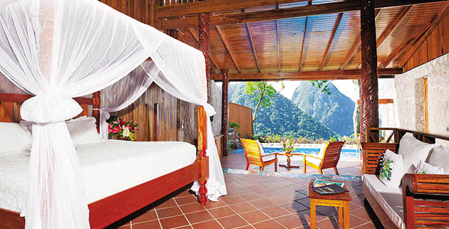 Οι 32 σουίτες του «Ladera Resort», σε υψόμετρο 330 μέτρων, προσφέρουν μοναδική θέα στα ηφαιστειογενή όρη Πάιτον, αλλά και στην Καραϊβική, γι’ αυτό και δεν αποτελούν αδίκως δημοφιλή προορισμό για νεονύμφους που θέλουν να ζήσουν τον έρωτά τους σε ένα άκρως ρομαντικό σκηνικό. Κάθε σουίτα διαθέτει πριβέ πισίνα και απεριόριστη θέα στη θάλασσα, καθώς λείπει εσκεμμένα ο τέταρτος τοίχος.