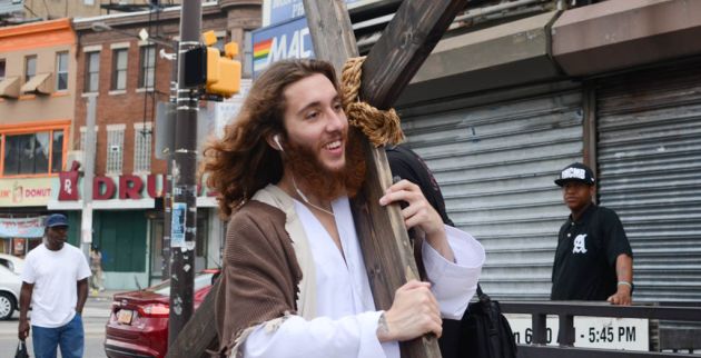 Φοράει ράσα, παριστάνει τον επί γης Ιησού και έχει 5.000 followers στο Instagram, οι οποίοι ανυπομονούν για τα νέα «θαύματά» του. Ο 28χρονος Μάικλ Γκραντ, γνωστός ως Philly Jesus, μοιάζει πολύ με τον Ιησού των κινηματογραφικών ταινιών και κυκλοφορεί στους δρόμους της Φιλαδέλφειας των ΗΠΑ σέρνοντας μερικές φορές ακόμη και τον σταυρό του μαρτυρίου. Ομως ο γενειοφόρος νεαρός το παρατράβηξε το περασμένο Σάββατο και θέλοντας προφανώς να εξαργυρώσει την επιτυχία του «σόου» που στήνει συνελήφθη, καθώς η αστυνομία τον έπιασε στα πράσα να ζητεί χρήματα από τους περαστικούς.