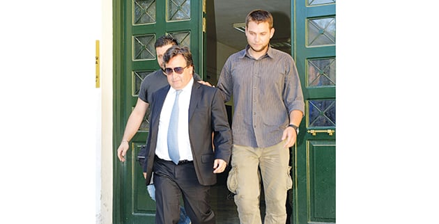 Ο επιχειρηματίας συνοδευόμενος από ισχυρή αστυνομική δύναμη αλλά και αρκετούς άνδρες της προσωπικής του φρουράς, που δεν τον άφηναν ούτε στιγμή από τα μάτια τους, πέρασε στις 5.00 το απόγευμα το κατώφλι της πρώην σχολής Ευελπίδων και οδηγήθηκε (χωρίς χειροπέδες) στο γραφείο του εισαγγελέα για την εκτέλεση του εντάλματος και κατόπιν ενώπιον της ανακρίτριας για να απολογηθεί. Ωστόσο ζήτησε και έλαβε προθεσμία προκειμένου οι δικηγόροι του να λάβουν γνώση της δικογραφίας. Ετσι μεταφέρθηκε εκ νέου στη ΓΑΔΑ.