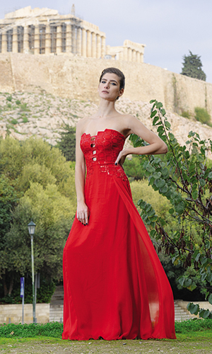 Μοναδικά είναι και τα φορέματα, τα οποία η σχεδιάστρια εμπνεύστηκε από τις Καρυάτιδες, όπως το κόκκινο που φοράει η Ευαγγελία Κουταλίδου, μοντέλο του «Next top model». «Θεωρώ πως έβγαλα όλη την Ελλάδα που έκρυβα μέσα μου, την Ελλάδα που αγάπησα μέσα από τα μάτια του πατέρα μου και της μητέρας μου, την εποχή που ζούσαμε μακριά από την πατρίδα μας» επισημαίνει η Δέσποινα Τούντα που επιμελήθηκε το look των μοντέλων μαζί με τον γνωστό hairstylist Τηλέμαχο Κωστόπουλο και τη make up artist Μόρφη Μενεμενόγλου.