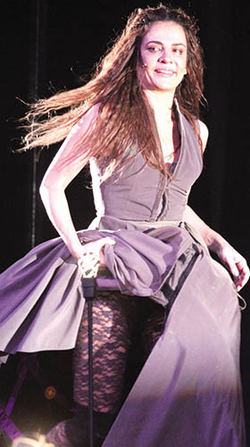 Σε μια πολύ δυνατή σκηνή αυτό το γκρίζο αλλά ιδιαίτερα λειτουργικό φουστάνι «άνοιξε» και αποκάλυψε το υπέροχο κορμί της με το μαύρο δαντελένιο κολάν και το ανοιχτό μπούστο προκαλώντας απανωτά «εγκεφαλικά» κυρίως στις πρώτες θέσεις! Ο ρόλος, ίσως ο καλύτερος στη θεατρική καριέρα της, της ταιριάζει «γάντι», αφού η ατίθαση και σέξι 46χρονη ηθοποιός ζει τις σχέσεις της τόσο έντονα όσο και τους χωρισμούς της.
