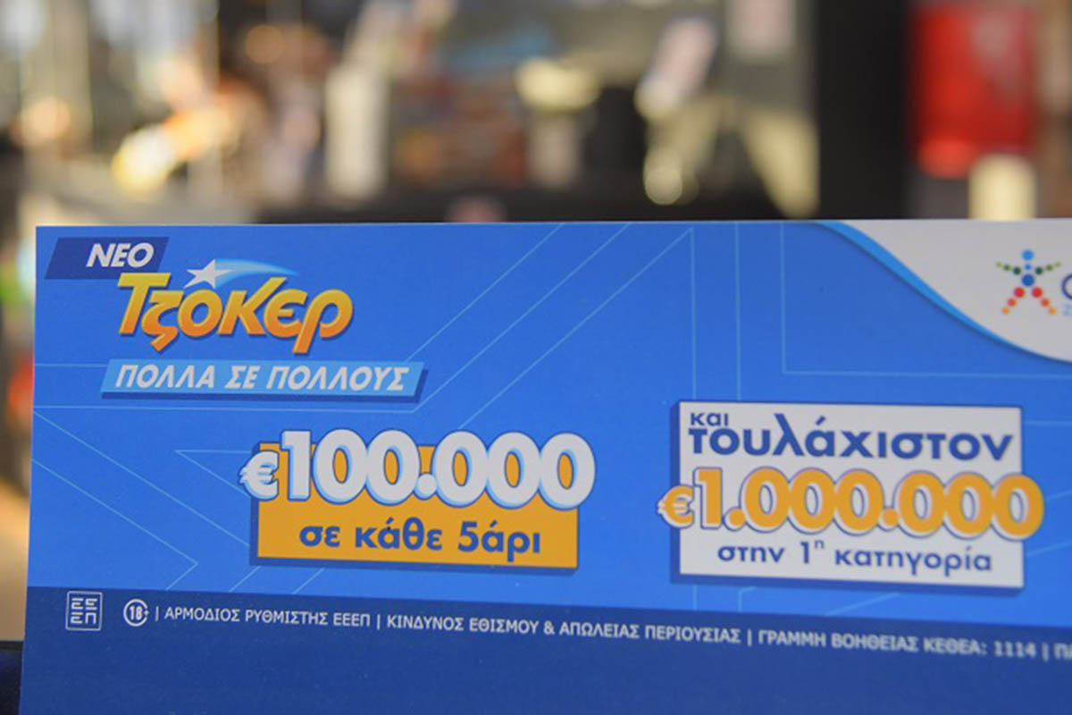 Το ΤΖΟΚΕΡ μοιράζει τουλάχιστον 4,8 ευρώ αυτή την Κυριακή στους νικητές της πρώτης κατηγορίας και 100.000 ευρώ σε κάθε τυχερό 5άρι