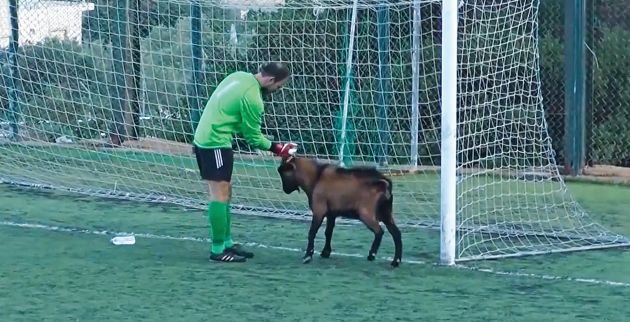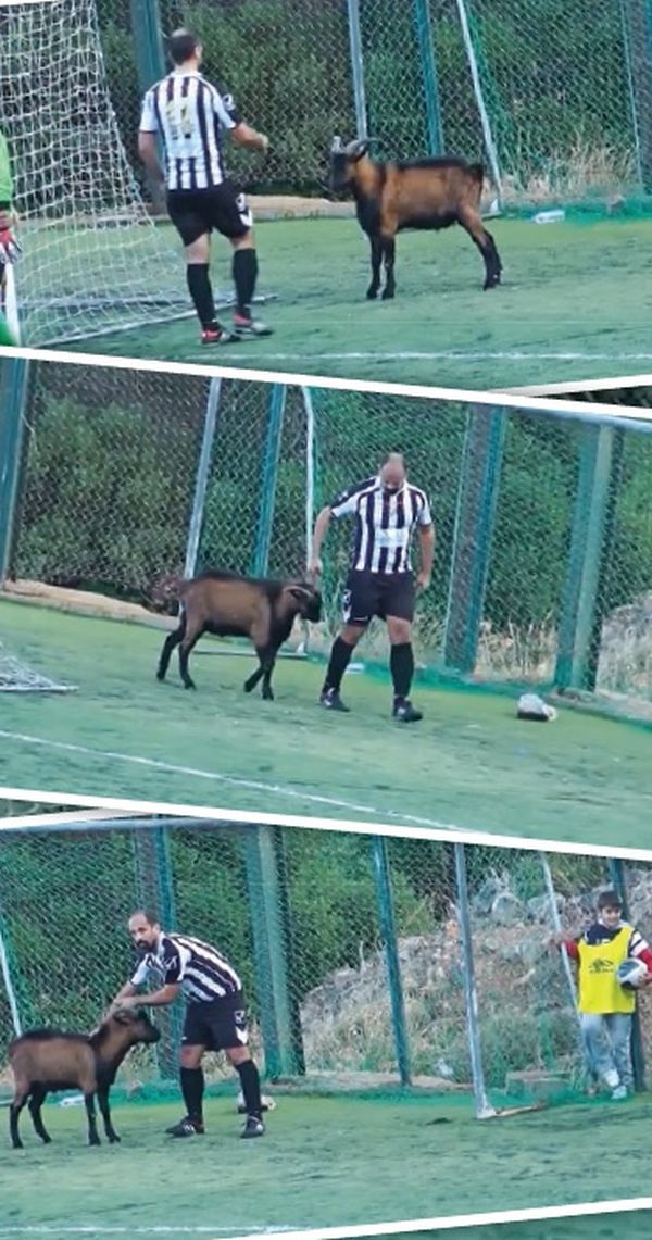 Ομως, ο… ποδοσφαιρόφιλος τράγος δεν το έβαλε κάτω, καθώς ήταν αποφασισμένος να συμμετάσχει στον αγώνα! Μπήκε ξανά στο γήπεδο περπατώντας με το πάσο του και αυτή τη φορά, σύμφωνα με το anatolhsport.com, μπλέχτηκε στα δίχτυα διακόπτοντας για δεύτερη φορά την αναμέτρηση! Ενας από τους φιλάθλους ανέλαβε δράση πιάνοντάς τον ξανά από τα κέρατα και βγάζοντάς τον έξω. Οπως ήταν αναμενόμενο, τις εικόνες απαθανάτισαν με τα κινητά τους οι θεατές, που δεν παρέλειψαν να χειροκροτήσουν τον αποφασιστικό φίλαθλο. Στο κενό της περίφραξης τοποθετήθηκαν πέτρες, ώστε να εμποδίσουν τον πεισματάρη τράγο να ξαναμπεί.