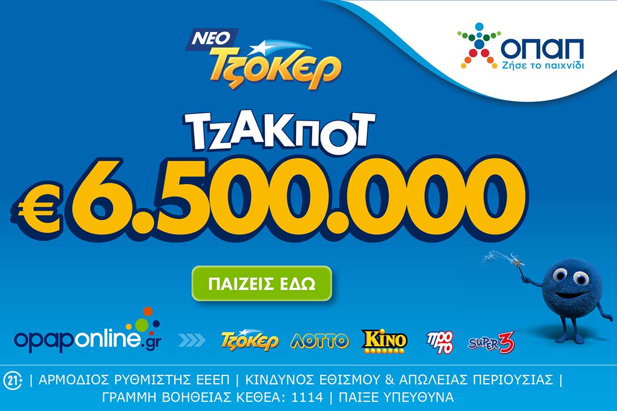Τζακ ποτ 6,5 εκατ. ευρώ απόψε στο ΤΖΟΚΕΡ