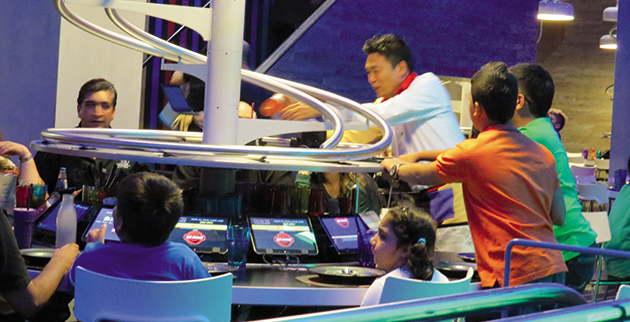 Τα πάνω κάτω αναμένεται να φέρει στον χώρο της εστίασης το νέο εστιατόριο του Αμπού Ντάμπι, εμπνευσμένο από το roller coaster. Στην περίπτωση του Rogo’s ωστόσο στο roller coaster δεν στροβιλίζονται οι πελάτες αλλά τα πιάτα, τα οποία καταφτάνουν στα τραπέζια ύστερα από ένα μίνι ταξίδι «τρόμου» σε ένα δίκτυο από 30 ράγες.
