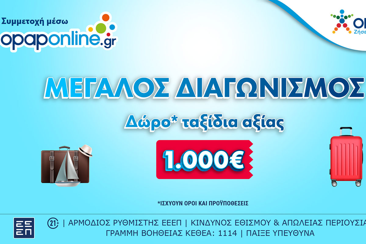Εβδομαδιαίες κληρώσεις* για ταξίδια αξίας 1.000 ευρώ στο opaponline.gr