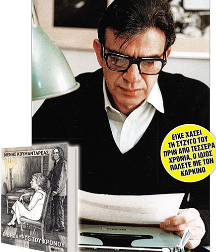 Η ανθρώπινη απώλεια πρωταγωνιστούσε και στο τελευταίο βιβλίο του Μένη Κουμανταρέα, το οποίο κυκλοφόρησε πριν από λίγες ημέρες και είχε τον τίτλο «Ο θησαυρός του χρόνου». Το αυτοβιογραφικό αυτό μυθιστόρημα ξεκίνησε να γράφεται το 2010, μετά τον χαμό της συζύγου του Λιλής, με την οποία υπήρξαν παντρεμένοι από το 1980. Η μορφή εκείνης κοσμεί το εξώφυλλο του βιβλίου (φωτό). Ο Μένης Κουμανταρέας ήταν ιδρυτικό μέλος της Εταιρίας Συγγραφέων, ενώ τη δεκαετία του 1980 διατέλεσε μέλος του Δ.Σ. της Εθνικής Λυρικής Σκηνής. Σημειώνεται ότι τελευταία η κατάσταση της υγείας του -έπασχε από καρκίνο- είχε επιδεινωθεί. Η κηδεία του θα γίνει αύριο, στις 14.00, από το Α’ Νεκροταφείο Αθηνών.