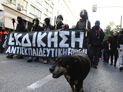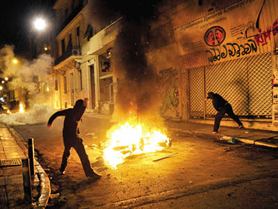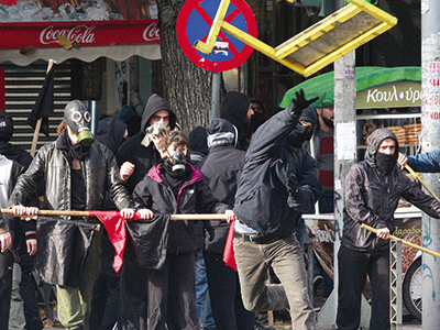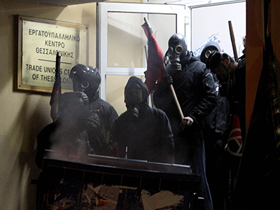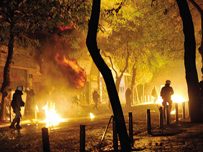 Στην πλατεία Ομονοίας ο «Αίαντας» (η αύρα της Αστυνομίας) έριχνε νερό ασταμάτητα, προκειμένου να σβήσουν οι φωτιές δίπλα στους αεραγωγούς του μετρό και στα Εξάρχεια οι βόμβες μολότοφ και τα γκαζάκια… έπεφταν βροχή από τις ταράτσες των πολυκατοικιών. Στη Θεσσαλονίκη λίγο έλειψε να σημειωθεί νέα τραγωδία Marfin (!), όταν ανεγκέφαλοι κουκουλοφόροι πυρπόλησαν κατάστημα που ήταν γεμάτο υπαλλήλους και πελάτες. Ακόμη, σοβαρά επεισόδια σημειώθηκαν σε πολλές μεγάλες πόλεις το Σάββατο, κατά τη διάρκεια ή μετά τις πορείες μνήμης για την έκτη επέτειο δολοφονίας του Αλέξανδρου Γρηγορόπουλου.