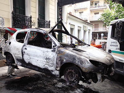 Ειδικά στα Εξάρχεια, το βασικό «πεδίο μάχης» στην Αθήνα, οι εικόνες καταστροφής θύμισαν Δεκέμβριο του 2008. «Βιώσαμε τη… μάχη του Λένινγκραντ στα Εξάρχεια» περιέγραψε υψηλόβαθμος αξιωματικός της ΕΛ.ΑΣ., επισημαίνοντας την πρωτόγνωρη στρατηγική που ακολούθησαν οι αντιεξουσιαστές, οι οποίοι ήταν έτοιμοι για πόλεμο και εφοδιασμένοι με «πολεμοφόδια» (βόμβες μολότοφ, πέτρες, μεταλλικά αντικείμενα).