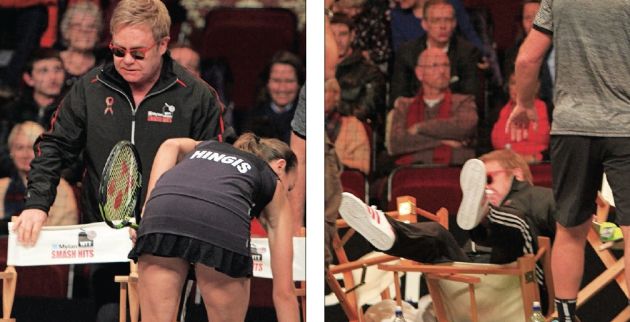 Θα θυμάται καιρό το «πάθημά» του ο Ελτον Τζον. Ο δημοφιλής τραγουδιστής έγινε κόκκινος σαν το παντζάρι από την ντροπή του όταν λίγο μετά τον πανηγυρισμό σε αγώνα τένις πήγε να καθίσει ξανά, αλλά η καρέκλα -τύπου σκηνοθέτη- ανατράπηκε και σωριάστηκε φαρδύς πλατύς με την πλάτη, προκαλώντας ανησυχία αλλά και γέλια. Το ατύχημα έγινε στη διάρκεια του φιλανθρωπικού αγώνα Statoil Masters Tennis, στο Αλμπερτ Χολ του Λονδίνου. Τα χρήματα διατέθηκαν στον αγώνα κατά του AIDS.