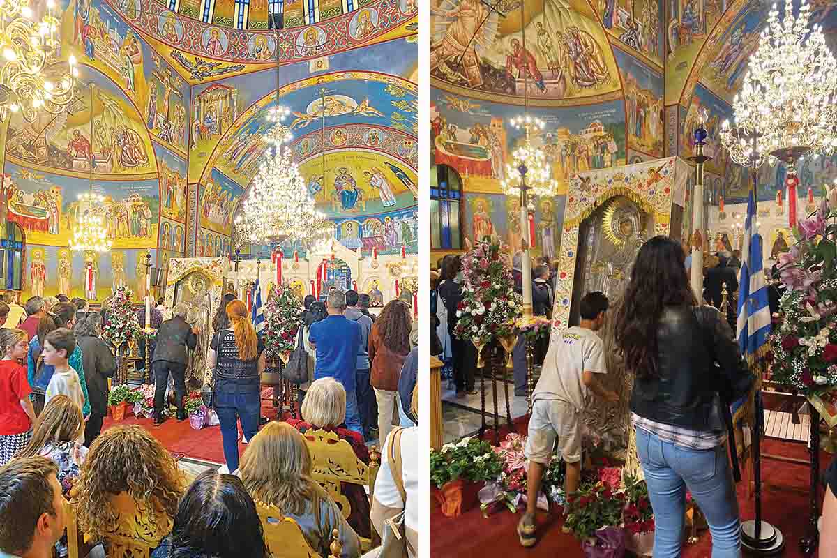 Τις τελευταίες ώρες, πλήθος κόσμου από όλη την Ελλάδα συρρέει στον Ιερό Ναό Αγίας Ματρώνας, με σκοπό να προσευχηθεί και να βιώσει από κοντά το μυστήριο της βαθιάς πίστης. Μέσα σε κλίμα ευλάβειας, ηλικιωμένοι, γονείς και μικρά παιδιά περιμένουν καρτερικά στην ουρά, προκειμένου να ασπαστούν την εικόνα της Παναγίας, σε μια βαθύτερη ανάγκη να στραφούν στην πίστη, ώστε να αντλήσουν δύναμη και να αντιμετωπίσουν τα προβλήματα που παρουσιάζονται καθημερινά.
