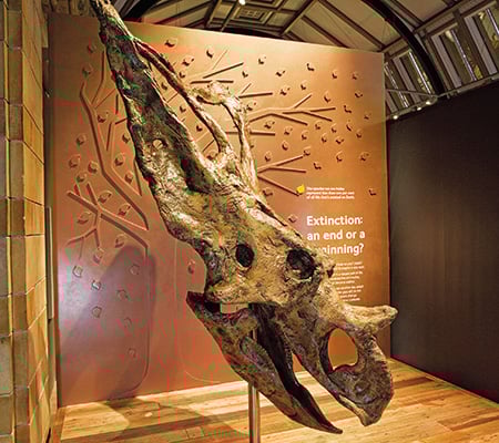 Το ερώτημα αυτό θέτει στους επισκέπτες η εντυπωσιακή έκθεση «Eξαφάνιση των ειδών. Ερχεται το τέλος του κόσμου;» που «μετακομίζει» από το Μουσείο Φυσικής Ιστορίας του Λονδίνου στο Κέντρο Πολιτισμού «Ελληνικός Κόσμος» της Πειραιώς. Υστερα από τη μεγάλη επιτυχία που γνώρισε στη βρετανική πρωτεύουσα, η δημοφιλής έκθεση έρχεται και στην Αθήνα από την Παρασκευή 12 Δεκεμβρίου, με στόχο να ταξιδέψει μικρούς και μεγάλους στο μακρινό παρελθόν, όταν στον πλανήτη μας ζούσαν εξαφανισμένα σήμερα είδη. Από τα πιο εντυπωσιακά εκθέματα είναι, μεταξύ άλλων, ένα αντίγραφο κρανίου χασμόσαυρου, και μάλιστα σε πραγματική διάσταση (από τους τελευταίους δεινόσαυρους που έζησαν στη Γη), αλλά και το τεράστιο αβγό ενός πουλιού-ελέφαντα!
