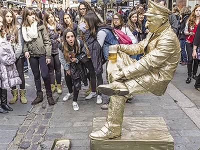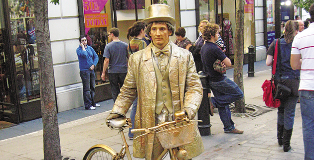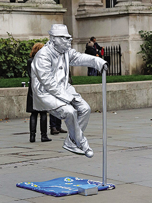 Πρόκειται για τους πλανόδιους καλλιτέχνες που βάφουν το πρόσωπο και τα χέρια τους με ασημιά ή χρυσαφιά μπογιά, και στέκονται ακίνητοι σε δημόσιους χώρους αναπνέοντας και ανοιγοκλείνοντας τα βλέφαρά τους ανεπαίσθητα, μέχρι να ακούσουν τον ήχο του κέρματος στο τσίγκινο δοχείο που έχουν μπροστά στα πόδια τους. Βασιλιάς Αρθούρος, Αγαλμα της Ελευθερίας, Ερως, Βασίλισσα Βικτόρια, αλλά και λιγότερο αναγνωρίσιμες περσόνες γίνονται ένα με τον κόσμο που πηγαινοέρχεται ανάμεσά τους στους πεζόδρομους της βρετανικής πρωτεύουσας περιμένοντας το ηχητικό «σύνθημα» για μια σύντομη ευκαιρία για ξεμούδιασμα.