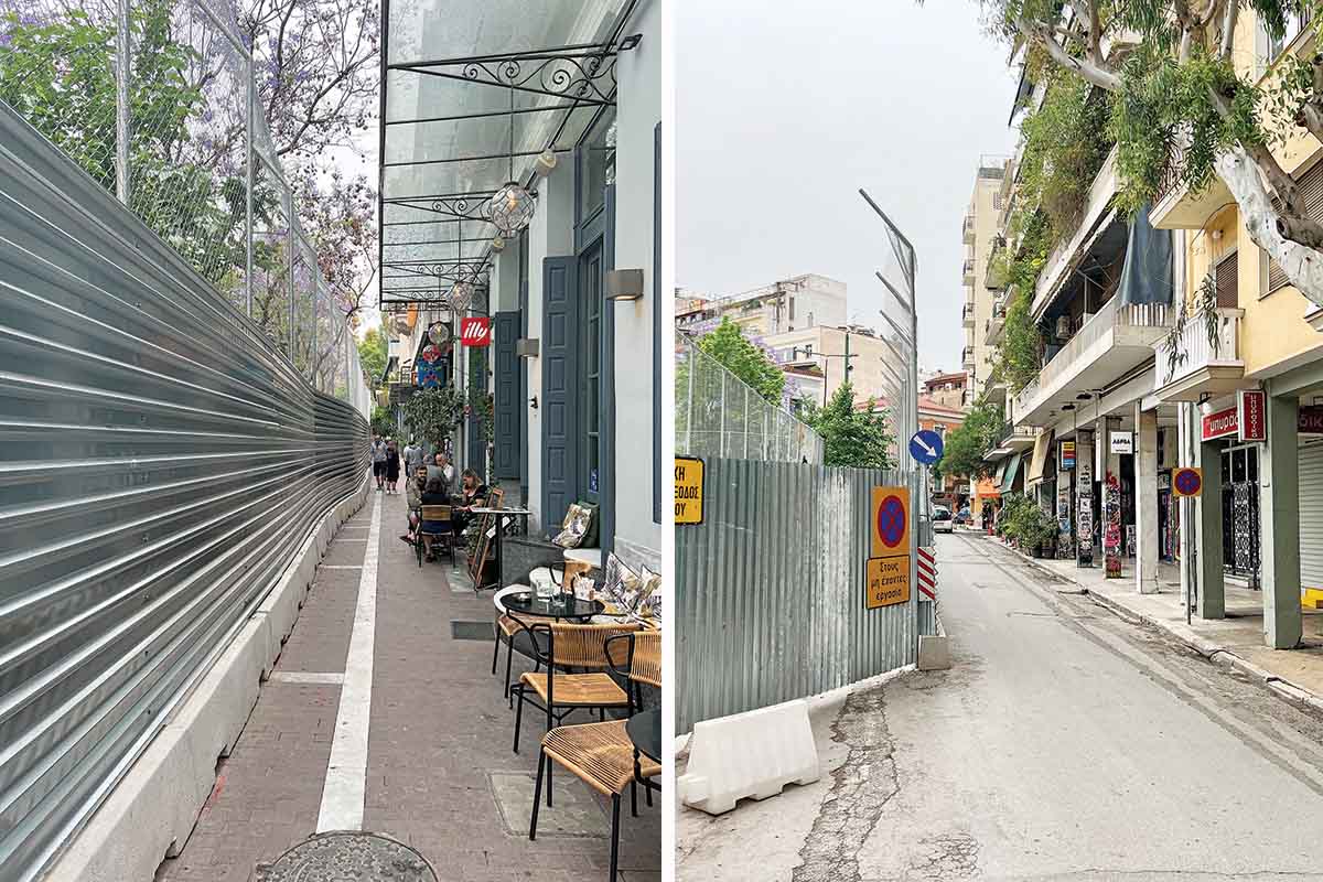 Πράγματι, η πρώτη εντύπωση που σου δίνεται είναι ότι βρίσκεσαι σε εμπόλεμη ζώνη, βλέποντας τις δυνάμεις των σωμάτων ασφαλείας να «στρατοπεδεύουν» γύρω από το εργοτάξιο και έναν φράχτη, ύψους 5 μέτρων, να ορθώνεται γύρω από την πάλαι ποτέ κακόφημη πλατεία. Αυτό δε που κάνει ιδιαίτερη εντύπωση στο μάτι είναι ο πεζόδρομος της Θεμιστοκλέους, μετά την επέκταση της λαμαρίνας, όπου άνθρωποι πίνουν ατάραχοι τον καφέ τους, καθισμένοι στα τραπέζια των καταστημάτων εστίασης, ενώ δίπλα τους ίσα ίσα που χωράει να περάσει ένας άνθρωπος. Η εικόνα αυτή μόνο δυσοίωνες σκέψεις μπορεί να γεννήσει στο μυαλό για το τι μπορεί να συμβεί σε περίπτωση έκτακτης ανάγκης, που πανικόβλητοι άνθρωποι θα τρέχουν να σωθούν μέσα σε μια τόσο στενή δίοδο!