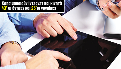 Σε ό,τι αφορά τον χρόνο χρήσης τεχνολογιών πληροφόρησης και επικοινωνίας (ίντερνετ, κινητό κ.ά.), ανέρχεται σε 43 λεπτά για τους άντρες και σε 25 λεπτά για τις γυναίκες, ενώ αυξημένος (1 ώρα και 36 λεπτά) εμφανίζεται στις μικρότερες ηλικίες, δηλαδή σε άτομα ηλικίας 20 έως 24 ετών.