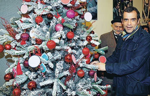 Αυτό το χριστουγεννιάτικο δέντρο δεν διακοσμήθηκε μόνο με λαμπερά στολίδια και φωτάκια, αλλά και με τις ευχές αγαπημένων ηθοποιών! Οι πρωταγωνιστές της παράστασης «Ντόλλυ η προξενήτρα» που ανεβαίνει στο θέατρο Αλίκη στόλισαν προχθές το βράδυ στο φουαγέ το δέντρο τους για τις φετινές γιορτές και θέλοντας να βάλουν την προσωπική τους πινελιά έγραψαν τις ευχές τους για το 2015 που έρχεται σε λίγες μέρες και τις κρέμασαν στα κλαδιά του. Μάλιστα η γιορτή που στήθηκε είχε και… ειδικό dress code, αφού όλοι οι ηθοποιοί φορούσαν τα εξαιρετικά κοστούμια της Ηλένιας Δουλαδίρη και του Παναγιώτη Λαμπριανίδη.