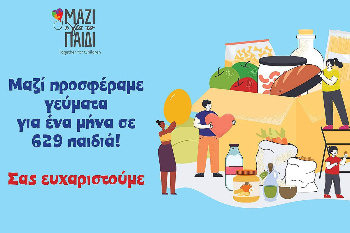 Με την πολύτιμη βοήθεια επώνυμων και ανώνυμων υποστηρικτών, το Μαζί για το Παιδί κατάφερε να ξεπεράσει τον αρχικό του στόχο και να στηρίξει περισσότερα από 600 παιδιά. Οι ωφελούμενοι φορείς έχουν τη δυνατότητα να προμηθεύονται τρόφιμα μέσω διατακτικών σε μεγάλες αλυσίδες σούπερ-μάρκετ για 1 μήνα προκειμένου να καλύψουν τις ανάγκες των φιλοξενούμενων παιδιών.