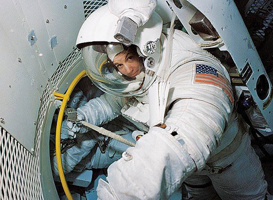 Στο βιβλίο «Sharing Space» η αστροναύτισσα που το 2010 έμεινε στον Διεθνή Διαστημικό Σταθμό για έξι μήνες αναφέρει ότι στο τέλος κάθε διαστημικού περιπάτου το σώμα της ήταν γεμάτο μελανιές, γδαρσίματα και πληγές που αιμορραγούσαν. Ολα αυτά εξαιτίας της διαστημικής στολής, που δεν ήταν σχεδιασμένη για γυναίκες, ούτε για το ύψος της. Αποκαλύπτει δε ότι τις έξι ώρες που διαρκούσε ο «περίπατος» φορούσε πάνα για ενηλίκους.