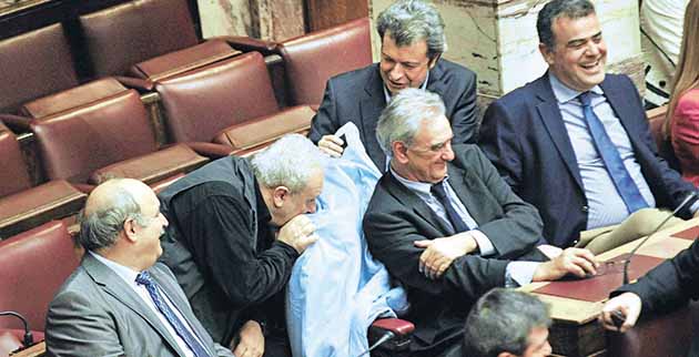 Οποια πάντως και αν είναι η αλήθεια, η εικόνα του Κοινοβουλίου (σε μια τόσο σοβαρή στιγμή για τη χώρα) παραπέμπει σε… λαϊκό ταβερνείο!