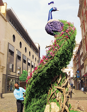 Ο Πρέστον Μπέιλι είναι γνωστός παγκοσμίως για την ικανότητά του να μετατρέπει απλούς χώρους σε μαγικούς. Τώρα μπορεί να μεταμορφώσει με την ιδιοφυΐα του τον δικό σας χώρο με ένα παγόνι που είναι διαθέσιμο σε δύο μεγέθη: ένα ύψους 1,8 μ. με τεράστια ουρά που αποτελείται από μεταξωτά λουλούδια και προορίζεται για κήπο, και έναν ύψους 0,90 μ. για το εσωτερικό του σπιτιού σας.