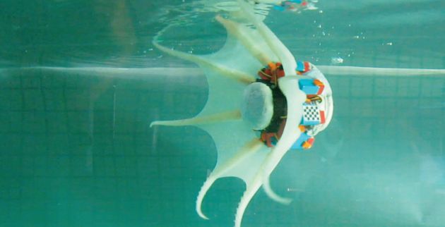 Η ερευνητική ομάδα που ανέπτυξε το πρωτότυπο ρομπότ (με τίτλο «Multi-arm Robotic Swimming With Octopus-Inspired Compliant Web») απαρτίζεται από τον Δημήτρη Τσακίρη ως επικεφαλής και τους Μιχάλη Σφακιωτάκη, Ασημίνα Καζακίδη, Αυγούστα Χατζηδάκη και Θεόδωρο Ευδαίμων. Το συγκεκριμένο ρομποτικό χταπόδι αποτελεί βελτιωμένη εκδοχή εκείνου που η ίδια ομάδα είχε παρουσιάσει το 2013. Η μεγάλη διαφορά του νεότερου μοντέλου είναι η προσθήκη ενός μαλακού και εύκαμπτου δικτύου σιλικόνης μεταξύ των πλοκαμιών, που επιτρέπει την αύξηση της ταχύτητας κολύμβησης και την αποδοτικότητα στην κίνηση. Το αποτέλεσμα της εξέλιξης αυτής είναι πραγματικά εντυπωσιακό. Το ρομπότ χωρίς το δίχτυ σιλικόνης κολυμπούσε με μέγιστη ταχύτητα 100 χιλιοστών ανά δευτερόλεπτο, ενώ με την προσθήκη της σιλικόνης φτάνει τα 180 χιλιοστά ανά δευτερόλεπτο!