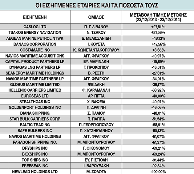 Ποιοι είναι οι πλοιοκτήτες που κατέγραψαν το 2014 χρηματιστηριακά κέρδη και ποιοι οι χαμένοι της χρονιάς