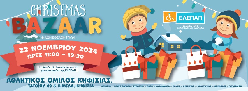 Οι Φίλες Εθελόντριες της ΕΛΕΠΑΠ σας προσκαλούν να γιορτάσετε τις Άγιες Ημέρες των Εορτών στο Χριστουγεννιάτικο Bazaar που διοργανώνουν για καλό σκοπό!