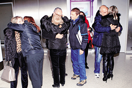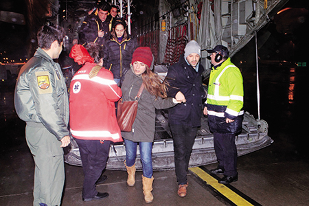 ΜΕ ΔΑΚΡΥΑ στα μάτια υποδέχτηκαν συγγενείς και φίλοι τους 127 Ελληνες επιβάτες του «Norman Atlantic», που διασώθηκαν από την κόλαση και επέστρεψαν την παραμονή της Πρωτοχρονιάς στην Ελλάδα και στο αεροδρόμιο «Ελευθέριος Βενιζέλος». Οι πρώτοι 106 προσγειώθηκαν στο «Ελ. Βενιζέλος» το απόγευμα με πτήση επιβατηγού αεροσκάφους και οι υπόλοιποι 21 λίγο μετά τις 10.00 το βράδυ με στρατιωτικό C-130. Φανερά ταλαιπωρημένοι από την απίστευτη περιπέτεια, αλλά και ανακουφισμένοι που γύρισαν σώοι στα σπίτια τους, οι Ελληνες διασωθέντες βυθίστηκαν στις αγκαλιές των δικών τους ανθρώπων που τους περίμεναν στο αεροδρόμιο, ενώ ορισμένοι είχαν το κουράγιο να μιλήσουν για τις ώρες αγωνίας που βίωσαν πάνω στο φλεγόμενο πλοίο.