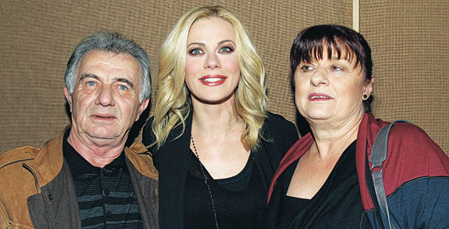 Χαμογελαστοί και ιδιαίτερα συγκινημένοι και οι γονείς της Ζέτας (αριστερά), ο μπαμπάς Κώστας Μακρυπούλιας (από τον οποίο έχει πάρει τα όμορφα μάτια) και η μαμά Κική, που έδωσαν το «παρών» στην πρεμιέρα και κατόπιν συνεχάρησαν την κόρη τους για την ερμηνεία της κλείνοντάς την στην αγκαλιά τους.