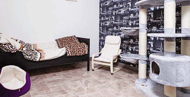 Ολες οι σουίτες είναι εξοπλισμένες με τηλεόραση και DVD player, ώστε να μπορούν να βλέπουν τα αγαπημένα τους σόου πρωί και απόγευμα, με κρεβάτια σε ανθρώπινο μέγεθος για να μπορούν να χουχουλιάσουν, με ονυχοδρόμια, τούνελ, τοίχους αναρρίχησης και δεκάδες παιχνίδια για να παραμένουν απασχολημένες. Επιπλέον έχουν τη δυνατότητα να «συνομιλήσουν» με τους ιδιοκτήτες τους μέσω Skype, όποτε εκείνοι ζητήσουν να δουν το αγαπημένο τους κατοικίδιο.