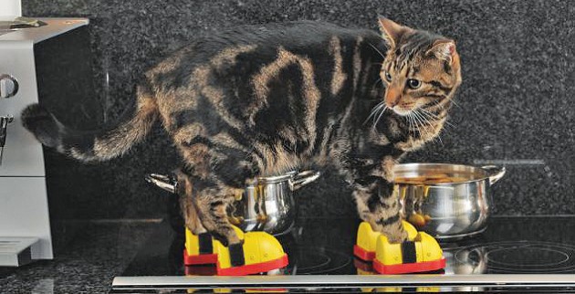 Η περιέργεια δεν θα σκοτώνει στο εξής τη γάτα! Η ζωή της δεν θα απειλείται κάθε φορά που μυρίζοντας τα αχνιστά φαγητά θα πηδάει πάνω στα μάτια της κουζίνας για να δει από κοντά τι ψήνεται μέσα στις κατσαρόλες, αφού πλέον υπάρχουν ειδικά παπουτσάκια για εκείνην! Τα Kitten Mittens ήρθαν για να προσφέρουν ανακούφιση σε όλους τους ιδιοκτήτες των αιλουροειδών, που τρέμουν κάθε φορά που μπαίνουν στην κουζίνα για να μαγειρέψουν. Τα προηγμένα αυτά παπουτσάκια έχουν σχεδιαστεί έτσι ώστε να προστατεύουν τις ευαίσθητες πατουσίτσες της γάτας, ακόμη και όταν εκείνη βολτάρει πάνω σε αναμμένα μάτια και κεραμικές εστίες. Είναι ανθεκτικά στη θερμότητα και την ίδια στιγμή πολύ βολικά και αναπαυτικά για το ίδιο το ζώο. Το επιβεβαιώνει μία από τις πρώτες αφεντικίνες που δοκίμασε τα πρωτοποριακά παπουτσάκια στην ψιψίνα της.
