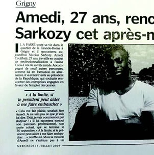 * Ο Αμεντί Κουλιμπαλί είχε δώσει τον Ιούλιο του 2009 συνέντευξη στον «Parisien» δηλώνοντας ενθουσιασμένος που θα συναντούσε τον Νικολά Σαρκοζί ως μέλος ομάδας νέων που συμμετείχαν σε πρόγραμμα μερικής απασχόλησης. «Το να τον συναντήσω από κοντά είναι εντυπωσιακό. Μας αρέσει δεν μας αρέσει, είναι, όπως και να το κάνουμε, ο πρόεδρος» είχε πει τότε ο Κουλιμπαλί.