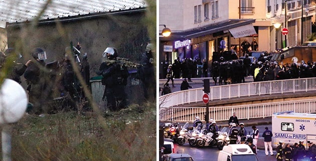Εξω από το Παρίσι οι αδερφοί Κουάτσι ταμπουρώθηκαν στο τυπογραφείο κρατώντας έναν όμηρο και προκαλώντας αγωνία σε χιλιάδες γονείς, εξαιτίας της εγγύτητας ενός μεγάλου σχολικού συγκροτήματος της περιοχής, που τελικώς εκκενώθηκε με ασφάλεια.