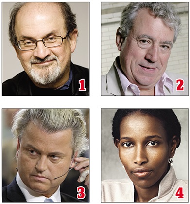 Στη συνέχεια, τέσσερις σκιτσογράφοι. Οι Κουρτ Βέστεργκααρντ, Κάρστεν Ζουστς και Φλέμινγκ Ρόουζ του δανέζικου σατιρικού περιοδικού «Jyllands-Posten» για τη δημοσίευση του σκίτσου με τον Μωάμεθ να φοράει τουρμπάνι-βόμβα, καθώς και η Αμερικανή Μόλι Νόρις, δημιουργός του κινήματος «Everybody Draw Mohammed Day». Επίσης, ο Αιγύπτιος χριστιανός κόπτης Μόρις Σαντέκ, που ζει στις ΗΠΑ, δημιουργός του ντοκιμαντέρ «Η αθωότητα των μουσουλμάνων», καθώς και ο καλλιτέχνης Λαρς Βιλκς που είχε σχεδιάσει τον Μωάμεθ με σώμα σκύλου.