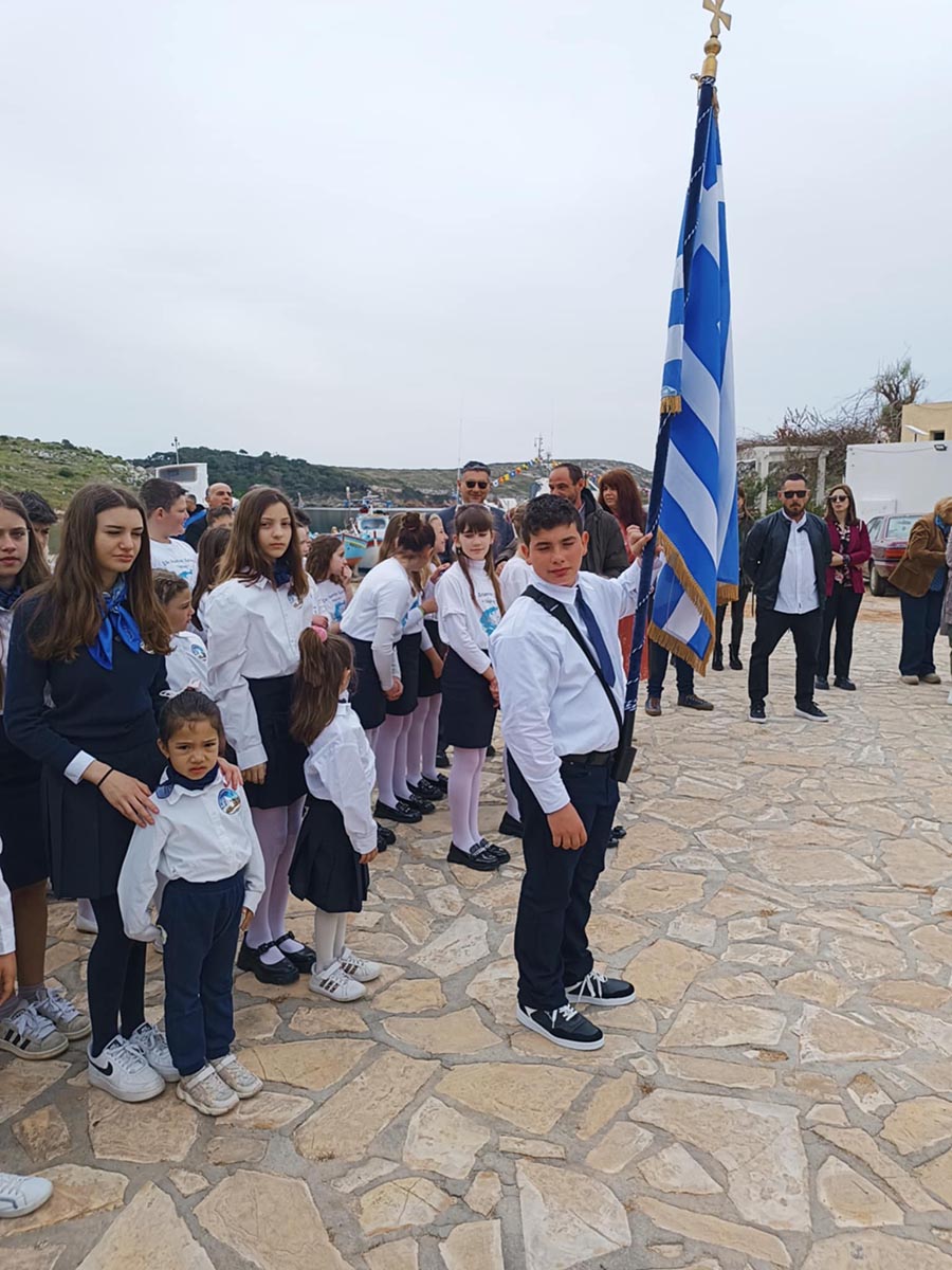 «Η 25η Μαρτίου ήταν μία από τις πιο όμορφες και συγκινητικές ημέρες της ζωής μου. Οταν σήκωσα τη σημαία και ακούστηκε ο εθνικός ύμνος, δεν μπόρεσα να κρατήσω τα δάκρυά μου. Ενιωσα περήφανος, αλλά και λυπημένος, γιατί ξέρω πως αυτή ήταν η τελευταία μου παρέλαση εδώ, στο νησί μου. Το γεγονός ότι ήρθαν παιδιά από το 13ο Δημοτικό Λάρισας και το 1ο Δημοτικό Σχολείο Βούλας για να γιορτάσουμε όλοι μαζί με έκανε να νιώσω πως δεν είμαι μόνος, πως αυτό το μικρό νησί δεν είναι ξεχασμένο» δήλωσε αποκλειστικά στην «Espresso» ο μικρός μαθητής και συνέχισε: