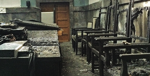 Ο νεαρός «Νέρωνας» είναι υπαίτιος και της πυρκαγιάς που εκδηλώθηκε στις 14 Μαρτίου του 2014 στην αίθουσα του κεντρικού ακροατηρίου του Δικαστικού Μεγάρου Ρόδου. Τότε είχε προκληθεί πανικός όταν το ακροατήριο Α’ του δικαστικού μεγάρου είχε τυλιχθεί στις φλόγες κατά τις πρωινές ώρες, δίχως να υπάρξουν τραυματισμοί, ενώ η τεράστια και ανεκτίμητης αξίας εικόνα του Εσταυρωμένου καταστράφηκε.