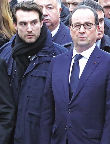Στην πρώτη γραμμή της πορείας που έγινε στο Παρίσι την Κυριακή βρισκόταν ένας άνδρας που δεν ήταν αρχηγός κράτους, αλλά αποδείχτηκε πολύ πιο δημοφιλής από τον Μπέντζαμιν Νετανιάχου και τον Φρανσουά Ολάντ. Ο «ωραίος της ημέρας», όπως τον χαρακτηρίζουν γαλλικά δημοσιεύματα, παίζοντας με τον τίτλο της ταινίας του Λουίς Μπουνιουέλ «Η ωραία της ημέρας», ήταν ο σωματοφύλακας του Γάλλου πρόεδρου.