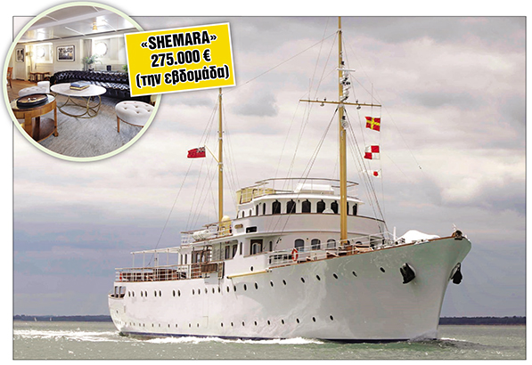 Με λίγες δεκάδες χιλιάδες ευρώ λιγότερα (436.000 ευρώ για την ακρίβεια) μπορεί κανείς να απολαύσει για μία εβδομάδα τις ανέσεις του «Utopia». Σε αυτές περιλαμβάνονται ένα διπλό κατάστρωμα που προσφέρει θέα 360 μοιρών και τζακούζι. Το μεγάλο υπνοδωμάτιο καταλαμβάνει όλο το πάνω κατάστρωμα και έχει ιδιωτική βεράντα για δείπνο. Στο πιο κλασικό «Shemara», που ναυπηγήθηκε το 1938, αντί 275.000 ευρώ μπορεί κανείς να απολαύσει την ιστορία, την κλασική κομψότητα και τις σύγχρονες ανέσεις. Το σκάφος που είχε χρησιμοποιηθεί από το βρετανικό πολεμικό ναυτικό κατά τον Β’ Παγκόσμιο Πόλεμο υποβλήθηκε πέρυσι σε ολοκληρωτική ανακαίνιση και μπορεί να φιλοξενήσει έως δώδεκα καλεσμένους σε οκτώ δωμάτια. Σε αυτά συμπεριλαμβάνονται η σουίτα που βρίσκεται στο πιο ψηλό κατάστρωμα και μια σουίτα VIP στο από κάτω κατάστρωμα.