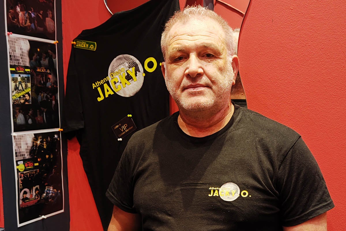 «Είχα δουλέψει ως χορευτής στην ταινία “Οταν οι ρόδες χορεύουν” με τον Σταμάτη Γαρδέλη, αλλά και σε άλλες. Την ντίσκο αυτή την ήξερα γιατί ερχόμουν και χόρευα από τις αρχές της δεκαετίας του ’80. Η Jacky O μέχρι το 1984 παρέμεινε όπως την ξέρετε μέσα από τις ταινίες. Μετά το 1984 άλλαξε στιλ και έτσι ο Γιάννης Δαλιανίδης σταμάτησε να κάνει γυρίσματα εδώ» λέει ο Πέτρος Παπανικολάου, ο οποίος, όπως μας εξηγεί, προσπαθεί να φτιάξει πανομοιότυπη την ντίσκο της δεκαετίας του ’80 εδώ και έναν χρόνο. «Ηθελα να είναι ίδιο το σκηνικό και στην είσοδό του και μέσα, ώστε ο άλλος και συναισθηματικά να δεθεί με το μαγαζί έτσι όπως ήταν και στο παρελθόν» μας εξηγεί.