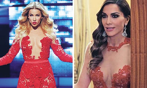 Η τραγουδίστρια επέλεξε για τα γυρίσματα του τρέιλερ του «The Voice 2» μια κατακόκκινη δημιουργία των MiRo. Εντυπωσιακό φόρεμα, με δαντελένιο μπούστο και πολλή διαφάνεια που έδινε την αίσθηση του nude. Στον λαιμό ακόμη λίγη δαντέλα έκανε το εφέ του γιακά. Πού το είχαμε δει ξανά; Παρόμοιο φόρεμα του ίδιου σχεδιαστικού διδύμου είχε φορέσει την περασμένη Κυριακή η εκρηκτική Κατερίνα Στικούδη στο live του «Dancing with the stars 5», μόνο που η δική της φούστα ήταν από δαντέλα, σε αντίθεση με εκείνη της Δέσποινας. Φαίνεται ότι οι MiRo πειραματίστηκαν στο ίδιο στιλ δίνοντας δύο παρόμοιες δημιουργίες στις δύο κυρίες, φροντίζοντας ναι μεν να μοιάζουν, αλλά να έχουν διαφορές, που οι πιο… παρατηρητικοί θα ήταν σε θέση να διακρίνουν.