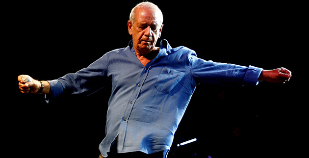 – Καθόταν πάντα στο κέντρο της σκηνής και δεν ήθελε καπνούς τεχνητούς. Ηθελε να φωτιζόμαστε, να φωτίζονται οι μουσικοί, γιατί του άρεσαν οι εκφράσεις που κάνουμε όταν παίζουμε, θεωρούσε ότι είχε ενδιαφέρον να βλέπει κανείς κάποιον την ώρα που παίζει μουσική. Και έλεγε πάντα κάτι λίγο στο κοινό και σχεδόν πάντα το ίδιο. Κάτι σαν «Καλώς ήλθατε. Σας ευχαριστούμε πάρα πολύ που είστε κοντά μας. Εύχομαι να περάσετε ένα ωραίο βράδυ». Μπορεί να άλλαζε καμιά λέξη, αλλά πάνω κάτω αυτό ήτανε.
