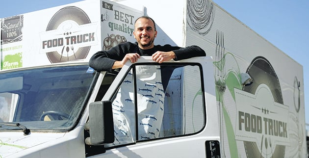 Οταν επέστρεψε στην Ελλάδα και αφού τελείωσε τις στρατιωτικές υποχρεώσεις του, θέλησε να δημιουργήσει δικό του εστιατόριο. Δεν τα κατάφερε. Είδε όμως μπροστά του την καντίνα και σκέφτηκε «γιατί όχι;». Ο ίδιος λέει: «Νοίκιασα λοιπόν την καντίνα και τη βάφτισα “Κατίνα”. Μια καλή φίλη μου από τη Σερβία, εικαστικός, τη ζωγράφισε κι έτσι μετονομάστηκε σε “Food Truck”. Φυσικά δεν προβληματίστηκα για το τι θα πουλάει! Μα, φυσικά ποντιακό γκεζλεμέ!