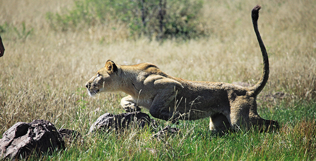 Τώρα οι πόρτες της φάρμας της Μποτσουάνα, όπου η μικρή λέαινα βρήκε τη σωτηρία, ανοίγουν όλο και πιο συχνά, και ο Γκρένερ τη μαθαίνει να κυνηγάει, ώστε να μπορεί να είναι αυτάρκης. «Εμαθε να είναι υπομονετική, να παρακολουθεί και να εμπλέκεται στη μάχη» δηλώνει ο υπερήφανος δάσκαλος της Σίργκα, ο οποίος πέρασε πολλές ώρες μαζί της μπουσουλώντας μέσα στις λάσπες και στα χωράφια για να της δείξει τις κινήσεις που πρέπει να κάνει στο κυνήγι της λείας της. «Η μέρα που έπιασε την πρώτη αντιλόπη της ήταν η πιο φανταστική της ζωής μου, επειδή διαπίστωσα ότι μια κάποια στιγμή θα μπορεί να φροντίζει μόνη της τον εαυτό της στην άγρια φύση» εξομολογήθηκε ο Γκρένερ, γεμάτος υπερηφάνεια.