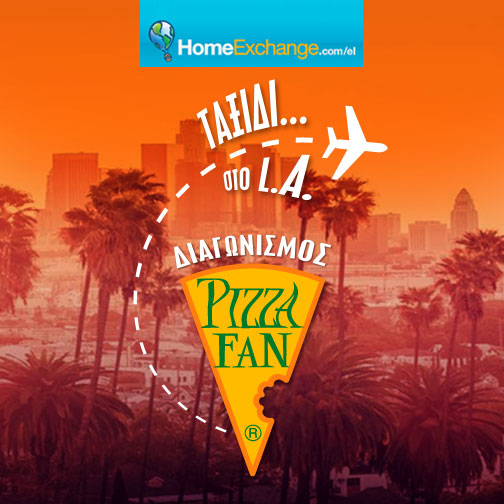 Με την Pizza Fan όλα είναι πιθανά!  Τώρα σε συνεργασία με το homeexchange.gr διοργανώνει  ένα μοναδικό διαγωνισμό και κάνει δώρο σε 1 τυχερό και την παρέα του (μέχρι 4 άτομα), ένα ταξίδι ζωής στο μαγευτικό Los Angeles