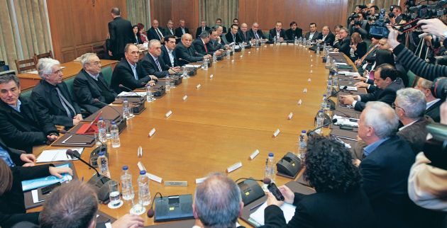 Με παραινέσεις προς τους υπουργούς να κρατήσουν χαμηλούς τόνους και «ωραία λόγια» περί ενότητας (θύμιζαν «κοκτέιλ» όσων είχαν πει παλαιότερα ο Ανδρέας Παπανδρέου και ο Κώστας Καραμανλής), ο Αλέξης Τσίπρας προήδρευσε χθες το πρωί στο πρώτο Υπουργικό Συμβούλιο επιχειρώντας να δώσει το στίγμα της νέας διακυβέρνησης.