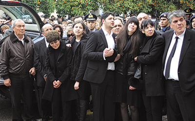 Δίπλα της στέκονταν τα μέλη της οικογένειάς της, οι γονείς του άτυχου αξιωματικού, η αδελφή του και ο μεγαλύτερος αδελφός του που υπηρετεί στην 117 Πτέρυγα Μάχης. Στις κηδείες έδωσαν το «παρών» σύσσωμη η νέα πολιτική ηγεσία του υπουργείου Εθνικής Αμυνας, η στρατιωτική ηγεσία των Ενόπλων Δυνάμεων, καθώς και πολλά στελέχη από τον Στρατό Ξηράς, την Αεροπορία και το Ναυτικό. Τιμές απέδωσαν η μπάντα της Πολεμικής Αεροπορίας, καθώς και άγημα συναδέλφων των δύο πιλότων, ενώ οι τελετές ταφής ολοκληρώθηκαν με την ανάκρουση του εθνικού ύμνου.