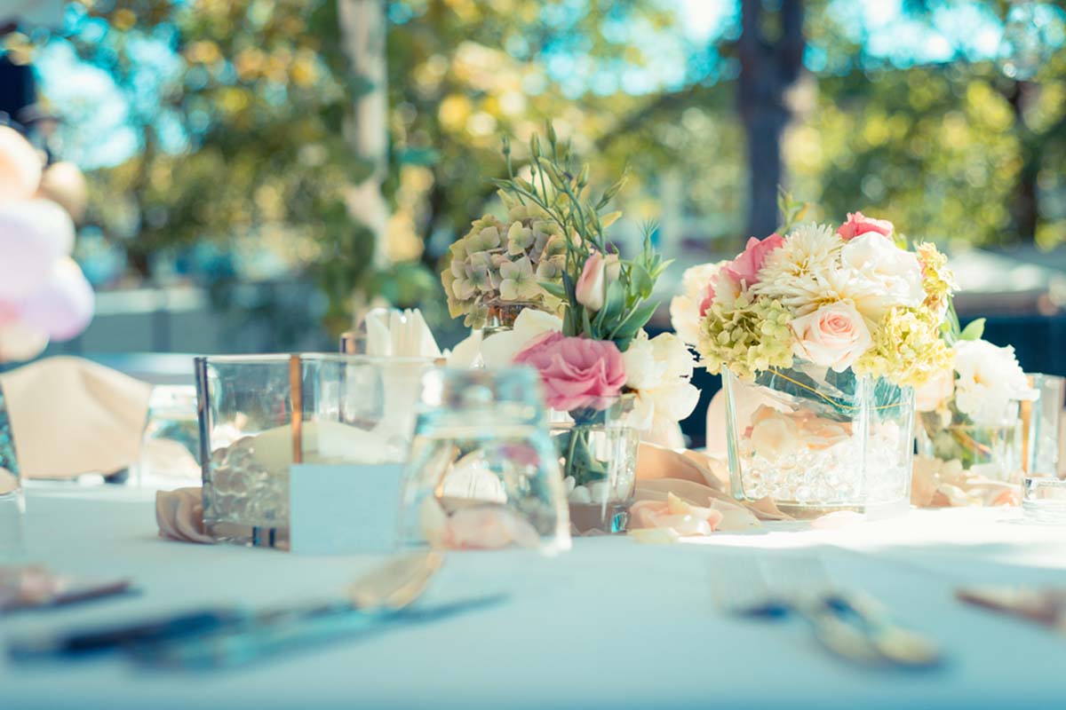 Αν διοργανώνετε summer party για την επέτειο ή και την ανακοίνωση του γάμου σας, διακοσμήστε τον χώρο σας με εντυπωσιακές συνθέσεις με κόκκινα τριαντάφυλλα. Σε συνδυασμό με κρυστάλλινα κηροπήγια και γυάλες με αρωματικά κεριά, θα δημιουργήσουν ένα χώρο γεμάτο με πάθος και ρομαντισμό !